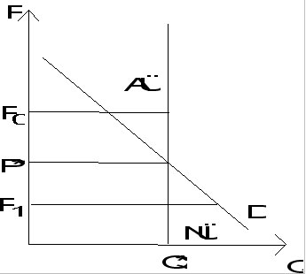 Ein Nachfrageüberschuss liegt vor, wenn der Preis P1 unterhalb des Gleichgewichtspreises liegt. Zu diesem niedrigen Preis ist die Nachfrage größer als das Angebot. Die einzelnen Nachfrager werden sich gegenseitig im Preis überbieten, um in den Genuss des Gutes zu kommen. Der Marktpreis wird also steigen.